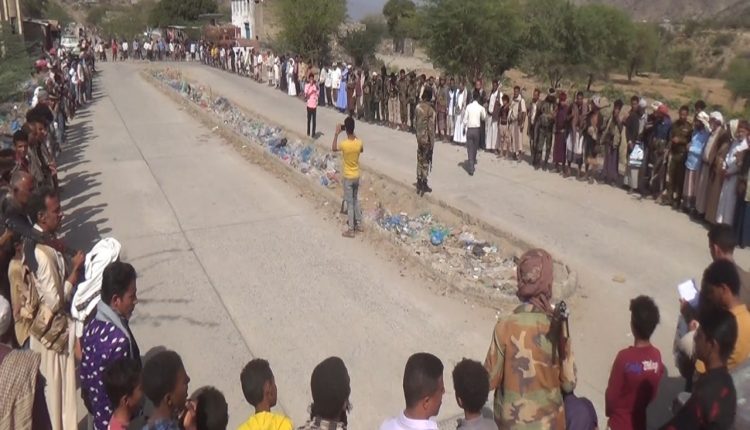 أقيمت في مركز مديرية فرع العدين بإب، وقفة قبلية مسلحة للتحشيد ومواجهة التصعيد الأمريكي العسكري والإقتصادي ..