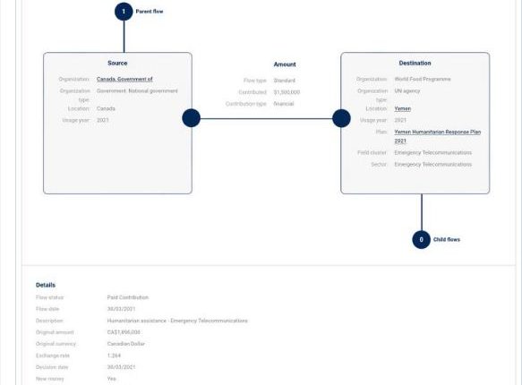 والوثيقة نشرها ناشطون على مواقع التواصل الاجتماعي نقلا عن موقع تتبع أموال المنظمات الأممية حول العالم والمعروف بـ”اف تي اس”.