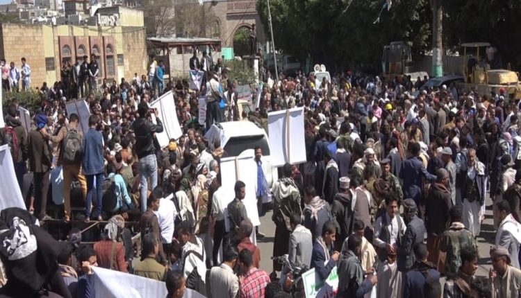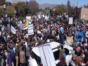 نظمت جامعة إب اليوم ، تظاهرة حاشدة تنديدا بالحصار الأمريكي لليمت وتأييدا لحملة إعصار اليمن للحشد والتعبئة والإستنفار ..