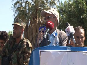 بدوره أكد رئيس جامعة إب الدكتور طارق المنصوب أن هذا الحشد الكبير للجبهة التعليمية دلالة على مستوى الوعي والحس الوطني لدى كافة منتسبي الجامعة من أكاديميين وإداريين وطلبة ووقوفقم صفا واحدا مع القيادة العليا المجاهدة وتلبية لدعوتها الوطنية للإستنفار في إطار حملة إعصار اليمن للتحشيد.