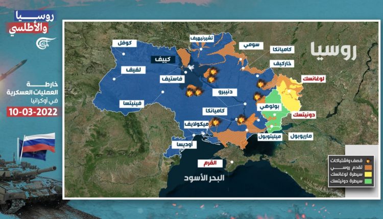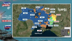 شاهد .. القوات الروسية تُعيد تموضعها في أوكرانيا، وتصبح على مسافة 2 أو 3 كيلومترات من العاصمة الأوكرانية كييف. إليكم خارطة العمليات العسكرية في أوكرانيا 10/03/2022.