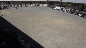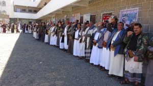 أقيمت اليوم بمربع ثوب أسفل بمديرية الظهار محافظة إب ، وقفة قبلية تاكيدا على أن حصار المشتقات النفطية قرار امريكي وخيارنا إعصار اليمن ..