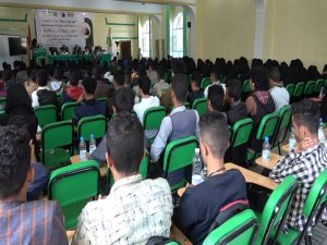 فعالية خطابية في جامعة القلم بإب دعما لحملة إعصار اليمن ..
