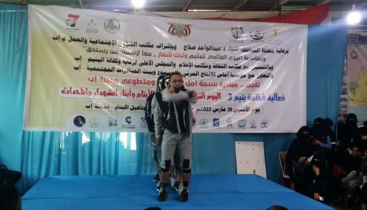 نُظم في محافظة إب يوم ترفيهي مفتوح للأيتام وأبناء الشهداء والأحداث ، بمناسبة اليوم العالمي لليتيم وتحت شعار ( معا لإسعاد من يستحق) .