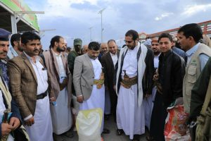 وفي ختام التدشين، بحضور القائم بأعمال وزير حقوق الإنسان علي الديلمي ونائب وزير الصناعة محمد الهاشمي، ورئيس الهيئة العامة للزكاة الشيخ شمسان أبو نشطان ونائب رئيس هيئة الأوقاف عبدالله علاو ووكلاء الهيئة وعدد من قيادات الدولة ومسؤولي الهيئة، قام أعضاء المجلس السياسي الأعلى الحوثي والوهباني والرهوي ورئيسا مجلسي الوزراء والشورى، بتوزيع سلال غذائية.