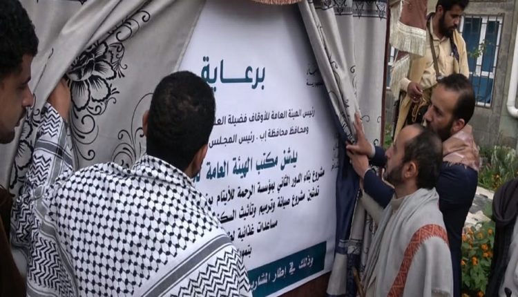 دشن نائب رئيس الهيئة العامة للأوقاف عبدالله علاو ومدير فرع الهيئة بمحافظة إب بندر العسل ، مشروع بناء الدور الثاني في مؤسسة الرحمة للأيتام بمنطقة ويخان مديرية الظهار البالغ كلفته (180) مليون ريال بتمويل من الأوقاف .
