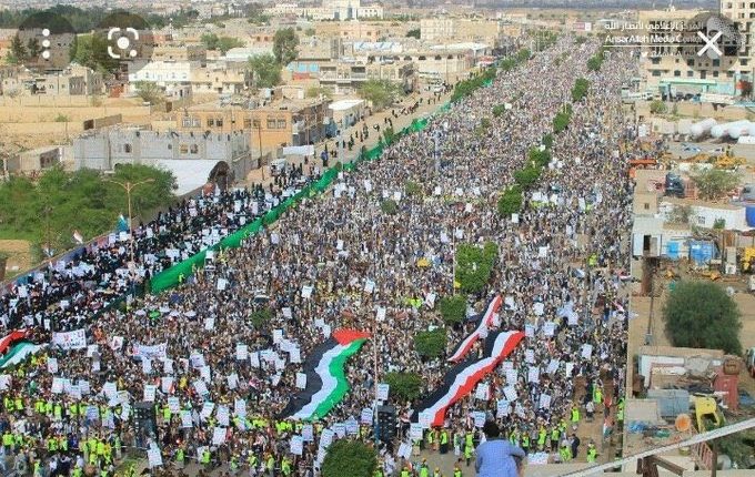 الحشد اليمني الكبير واللافت في 60 ساحة في العاصمة صنعاء و13 محافظة يمنية أخرى فاق التوقعات وفق اللجان المنظمة ، مثل رسالة قوية بما تمثل فلسطين والقدس من حضور قوي في وجدان الشعب اليمني .