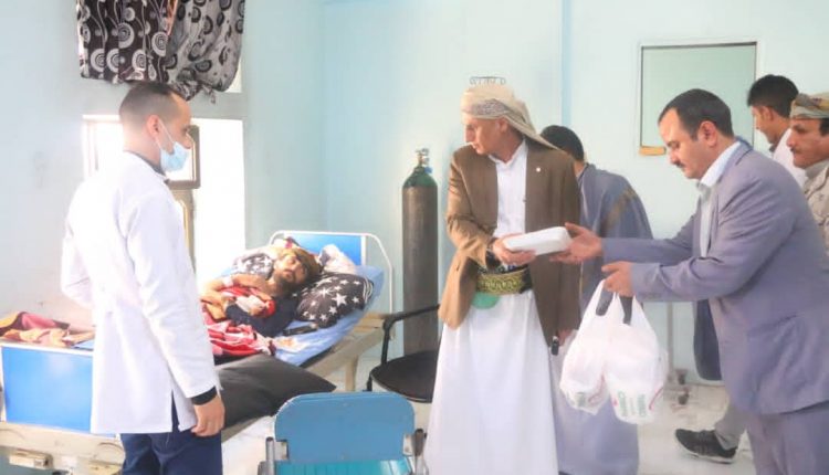 يذكر أنه وأثناء الزيارة تم توزيع حلويات العيد لجميع المرضى والعاملين والمتواجدين في المستشفى .