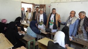 دشن اليوم أمين عام المجلس المحلي بمحافظة إب أمين الورافي ومعه وكيل وزارة التربية والتعليم عبدالله النعمي ومدير عام مكتب التربية بالمحافظة محمد الغزالي، ، اختبارات الشهادة الأساسية للعام الدراسي 2021 – 2022م .