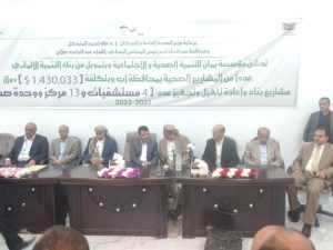 وتشمل المشاريع التي تنفذها مؤسسة يمان للتنمية الصحية والإجتماعية بتمويل بنك التنمية الإلماني ، بناء وإعادة تأهيل وتجهيز أربعة مستشفيات و13 مركزاً ووحدة صحية بالمحافظة.