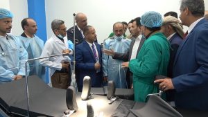 واطلع وزير الصحة ومرافقوه على سير العمل بالمستشفى وطبيعة الخدمات الصحية المقدمة للمواطنين، خاصة بأقسام الطوارئ التوليدية والعمليات والعناية المركزة والمختبر ومركز العلاج الطبيعي وغيرها.