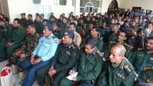 داعياً جميع الضباط والأفراد إلى الاحترام المتبادل والعمل بروح الفريق الواحد والتحلي بروح الإيمان والانضباط والتعاون مع مدير الأمن الجديد لتنفيذ جميع المهام بالشكل المطلوب وجعل محافظة إب تنعم بالأمن والأمان والاستقرار .