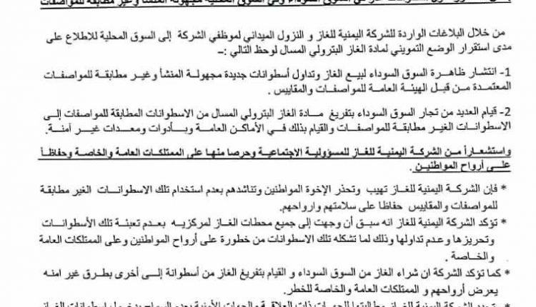 صادر عن الشركة اليمنية للغاز – صنعاء