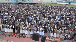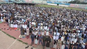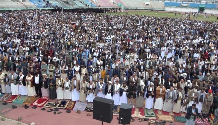 قيادة إب تؤدي صلاة العيد وخطبتيها مع جموع المواطنيين وزيارات للجرحى ورجال الأمن .