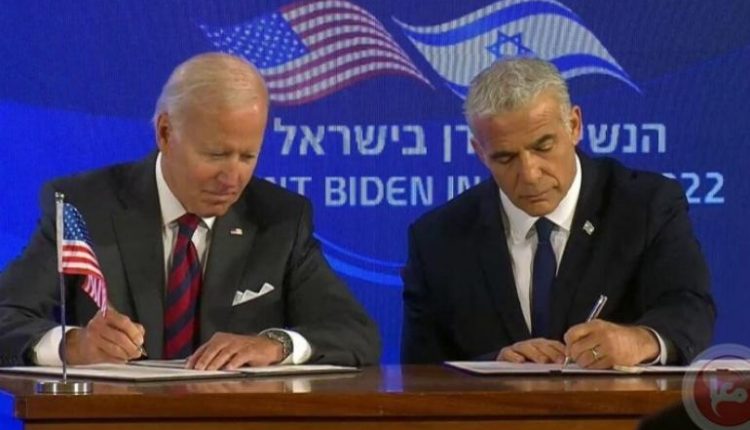 في نهاية زيارته، وقع الرئيس الامريكي جو بايدن اليوم الخميس في القدس المحتلى اتفاقا مشتركا مع رئيس كيان الاحتلال الاسرائيلي يائير لبيد والذي أطلق عليه ” إعلان القدس”.