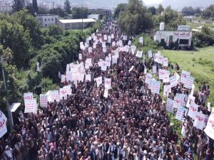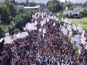أقيمت اليوم في محافظة إب تظاهرةً جماهيرية حاشدة إحياءً ليوم عاشوراء ذكرى استشهاد الإمام الحسين عليه السلام ونصرةً للشعب الفلسطيني.