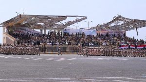 أقيم في ساحة العروض بمحافظة إب ، عرض عسكري مهيب لقوات رمزية من كتائب الدعم والإسناد بمناسبة تخرج الدفعة الثانية عشرة ( دفعة الاقصى الشريف ) من منتسبيها في محافظات إب والضالع وتعز ..