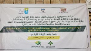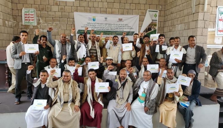 وكان مدير إدارة الإرشاد الزراعي بمكتب الزراعة بالمحافظة عبدالحكيم المفتي قد ألقى كلمةً استعرض فيها جانبا من المعارف والخبرات التي تلقاها المشاركين في هذه الدورة…لافتا إلى ان اختيار المشاركين في الورشة تم وفق اسس العمل الرسمي والشعبي حيث شارك مسؤولي الإرشاد في المديريات المستهدفة بالإضافة إلى الجانب الشعبي المكون من فرسان التنمية وممثلين من الجمعيات