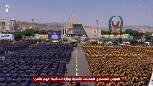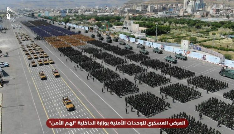 نفذت وزارة الداخلية في حكومة صنعاء صباح اليوم في ميدان السبعين بأمانة العاصمة عرضاً عسكرياً كبيراً شارك فيه عدد كبير من الوحدات العسكرية الأمنية والآليات والمعدات المصنعة محلياً ،