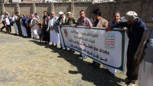وكان وكيل المحافظة المساوى قد ألقى كلمة استنكر فيها الدور السلبي للامم المتحدة والمنظمات الحقوقية وانحيازها الكامل الى صف العابثين والمعتدين وناهبي ثروات اليمن على حساب الشعب اليمني المحاصر والمحروم من ابسط حقوقه المعيشية ..