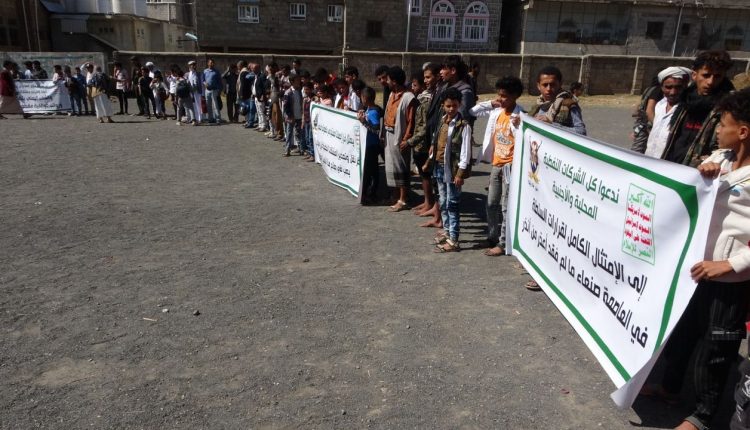 وشدد المشاركون في بيان وقفتهم على أهمية هذه الضربة التحذيرية التي تهدف إلى قطع ايادي العبث والنهب لثروات البلد من قبل قوى العدوان الغاشم في حين يعاني أبناء هذا الشعب الحرمان والفقر وقطع الرواتب منذ عدة سنوات ..