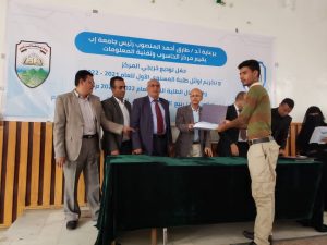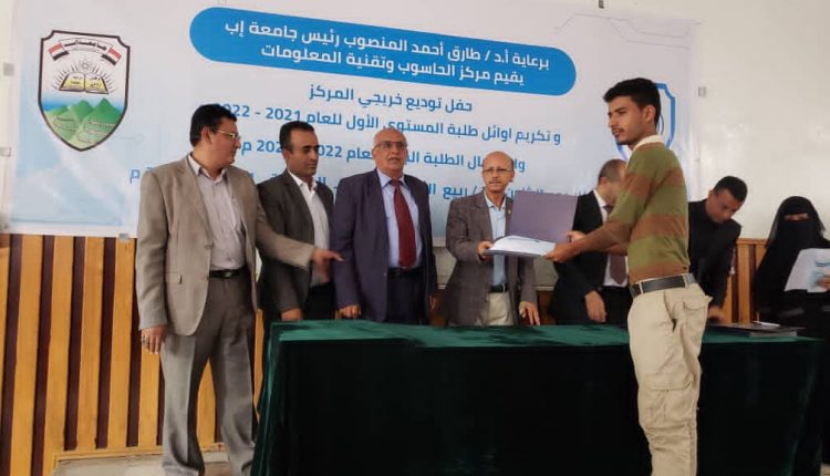 أقام مركز الحاسوب وتقنية المعلومات بجامعة إب حفلا تكريميا للطلبة الأوائل للعام الجامعي المنصرم بالتواقت مع إستقبال وتوديع دفع جديدة.