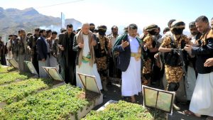 شاهد بالصور : الحوثي يفتتح معرض الشهداء المركزي بمحافظة إب ويزور روضة المشنة ..