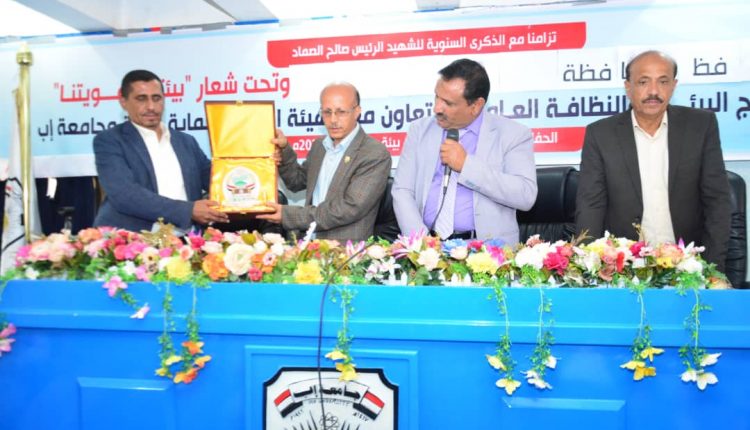 تزامنا مع الذكرى السنوية للشهيد الرئيس صالح الصماد وتدشين الأنشطة البيئية للعام الجامعي الجديد أقيم صباح اليوم إحتفالا تكريميا لجامعة إب وعدد من الجهات كأفضل بيئة جامعية للعام الثاني على التوالي وفقا للتقييم الذي نفذه برنامج البيئة والنظافة العامة ومركز الرصد والتثقيف البيئي بالتعاون والتنسيق مع السلطات المحلية في امانة العاصمة وعموم المحافظات والهيئة العامة لحماية البيئة عقب النزول الميداني للعديد من المؤسسات الحكومية والخاصة.