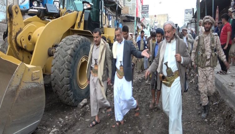إب : بدء العمل في مشروع الصيانة والرصف الخرساني للشارع العام بالعدين.