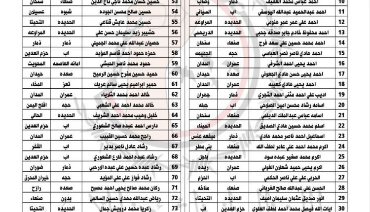 أعلنت لجنة شؤون الأسرى في صنعاء، الخميس، أسماء 220 أسير من قوات صنعاء، سيصلون غدا إلى مطار صنعاء الدولي.