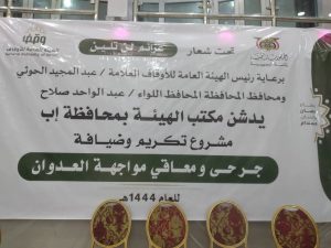 وأكد الوكيل المساوى حرص قيادة السلطة المحلية واهتمامها برعاية الجرحى وإعادة تأهيلهم .. مشيدا بدور مكتب الأوقاف بالمحافظة في تنفيذ هذه المبادرة التي تترجم حرص القيادة الثورية والسياسية واهتمامها برعاية الجرحى واسرهم.