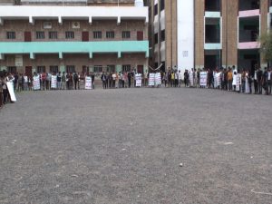 وأعلن الطلاب تضامنهم مع الشعب الفلسطيني، وتأييد ومباركة خيارات الردع لحركات المقاومة الفلسطينية وردهم المشروع على جرائم الكيان الصهيوني الغاصب.