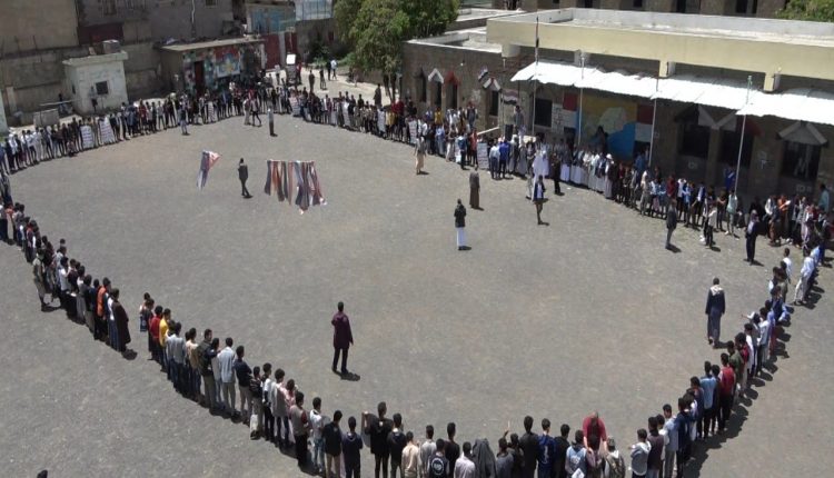 نظمت في مديريتي الظهار والمشنة بمحافظة إب اليوم وقفتان لطلاب الدورات الصيفية المغلقة والنموذجية والمفتوحة تضامناً مع الشعب الفلسطيني.