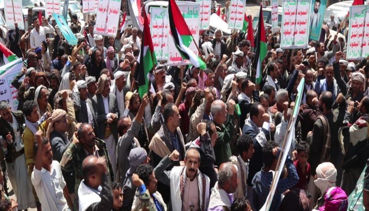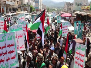 مسيرتان للمربعين الجنوبي والغربي بمحافظة إب تضامنا مع الشعب والمقاومة الفلسطينية ..