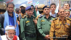 وأشاد محافظ إب عبدالواحد صلاح، بالخروج الكبير لأبناء المحافظة لإحياء هذه المناسبة استشعار منهم للمسؤولية الوطنية في ظل ما يتعرض له الوطن من عدوان وحصار.. منوها بتضحيات أبناء محافظة إب في سبيل الدفاع عن الوطن.