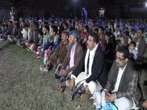 وتنوعت فقرات الأمسية التي أحتوت على العديد من القصائد الشعرية والأناشيد والزوامل الحماسية والبرع اليمني الأصيل ..