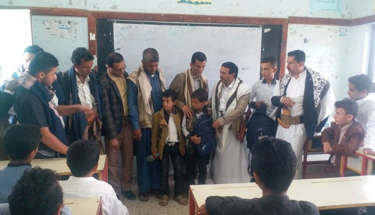تدشين توزيع الحقيبة المدرسية لأبناء الشهداء في مديرية حبيش بمحافظة إب.