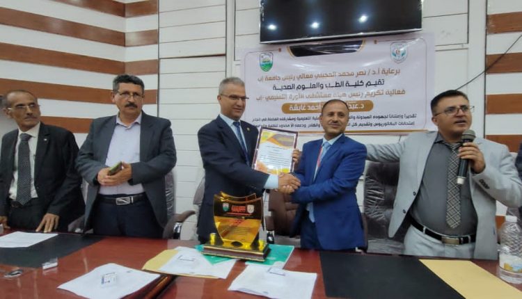 تزامنا مع بدء العام الجامعي الجديد ١٤٤٥هجري أقامت كلية الطب والعلوم الصحية بجامعة إب إحتفالا تكريميا لهيئة مستشفى الثورة التعليمي ممثلة برئيسها الدكتور عبدالغني غابشة بالتواقت مع حفل إستقبال الطلبة المستجدين.