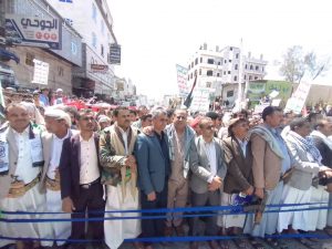 وردد المشاركون في المسيرة التي تقدمها مشرف المحافظة يحيى اليوسفي وعدد من اعضاء مجلسي النواب والشورى ووكلاء المحافظة والقيادات القضائية والأكاديمية والتربوية والعسكرية والأمنية ، الهتافات والشعارات المباركة لهذه العملية العظيمة والداعمة للمقاومة الفلسطينية ضد الصهاينة ..
