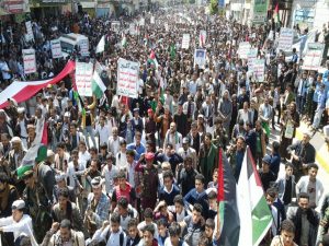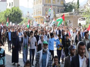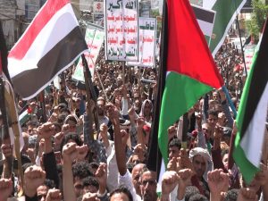 وخلال المسيرة الجماهيرية الحاشدة ، أكد المشاركون ، أن ما يسطره أبطال المقاومة في غزة من ملاحم بطولية لم يسبق لها مثيل من قبل، تبعث على الفخر والإعتزاز .. مشيرين في بيان وقفتهم الذي تلاه وكيل المحافظة عبدالفتاح غلاب إلى أن الشعب اليمني يبارك معركة طوفان الأقصى التي أوجعت الكيان الصهيوني .. معلنين حالة الإستنفار الشامل شعبيا وعسكريا استعدادا لأي تطور ميداني يتطلب المشاركة المباشرة إلى جانب الشعب الفلسطيني ومقاومته الباسلة ..