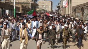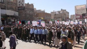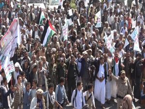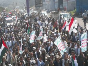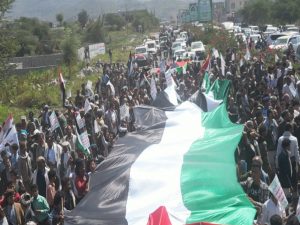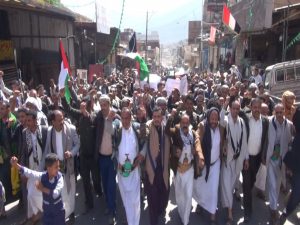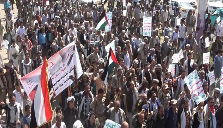 وخلال المسيرة التي تقدمها مساعد قائد المنطقة العسكرية الرابعة اللواء حمود شتان وقيادات السلطة المحلية والأشرافية بالمديريتين ، اعلن المشاركون في المسيرة وقوفهم ومساندتهم للمقاومة الفلسطينية وأبطالها والإستعداد والجهوزية لأي تحرك يدعم ويساند معركة طوفان الأقصى ضد اليهود ..