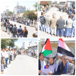 وأعلن المشاركون في الوقفة ، تأييدهم المطلق لما جاء في خطاب قائد الثورة السيد عبد الملك بدر الدين الحوثي بشأن عملية “طوفان الأقصى ” .. مؤكدين جهوزيتهم لتنفيذ توجيهاته بالاستعداد لمعركة التحرير ونصرة الشعب الفلسطيني واﻷقصى الشريف.