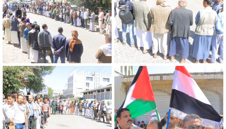 وقفة لموظفي مكتب اﻷوقاف بإب تأييدا لعملية طوفان الأقصى.