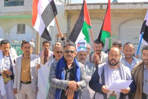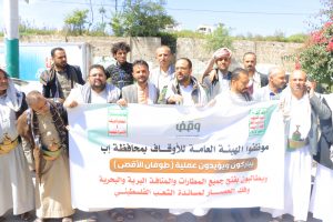 وقفة لموظفي مكتب اﻷوقاف بإب تأييدا لعملية طوفان الأقصى