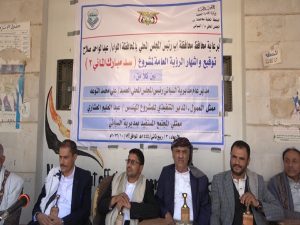 أقيمت في مديرية السياني بمحافظة إب ، فعالية توقيع و إشهار الرؤية العامة لمشروع ( سد مبارك المائي 2) والذي سيُنفذ في منطقة العرش بعزلة النقليين على نفقة فاعل خير.