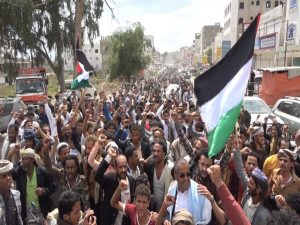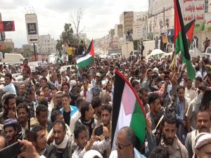 واشاد بيان المسيرة بالموقف الشامخ والعظيم لسماحة قائد الثورة السيد عبدالملك بدر الد ين الحو ثي لنصرة الشعب الفلسطيني ومساندة مقاومته الباسلة .