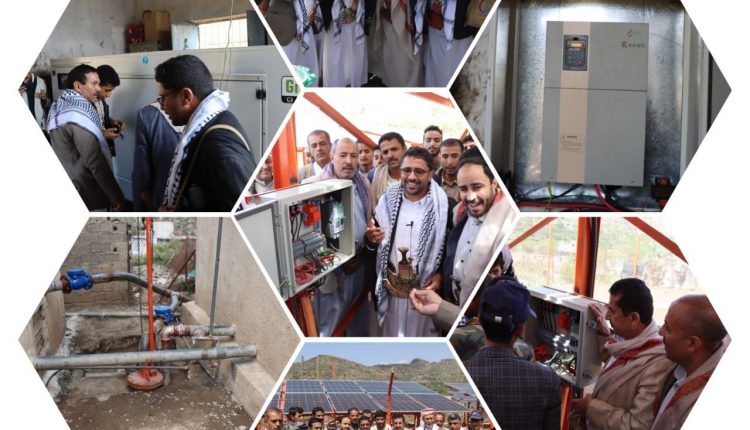 تدشين تشغيل مشروع مياه العارضة قحزة والعزل المجاورة بالطاقة الشمسية في مديرية حبيش بإب .