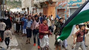وفي مدينة يريم احتشد أبناؤها في جمعة النصرة والتضامن مع شعب فلسطين المظلوم ..