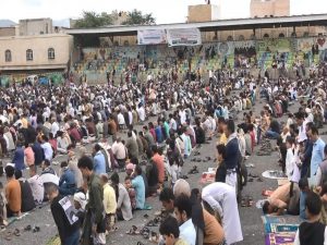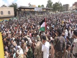 احتشد أبناء مدينة إب اليوم في الإستاد الرياضي بمركز المحافظة في جمعة التضامن والنصرة مع الشعب الفلسطيني ..