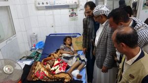 زيارة لجرحى القصف الوحشي لطيران العدوان على مدرسة بالضالع ..